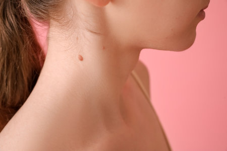 Mole mole on the skin of a person, dermatology, background, copy space, pigmentation