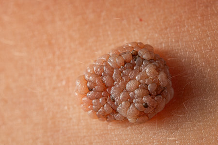 Close-up of a large mole on the body of a caucasian man. macro shot.