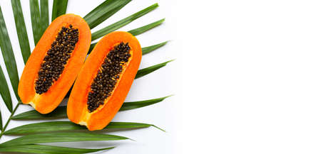 Papaya fruit on white background. Copy space