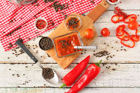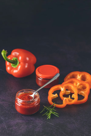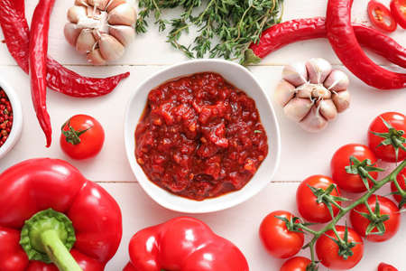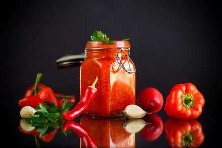 fresh natural homemade sauce made of peppers, tomatoes and other vegetables