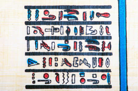 Ancient Egyptian hieroglyphs on a papyrus sheet