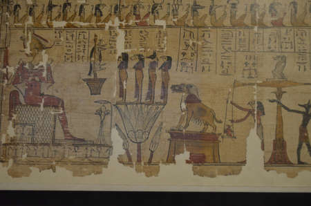 Original sheet of the papyrus with the image of ancient gods and symbols