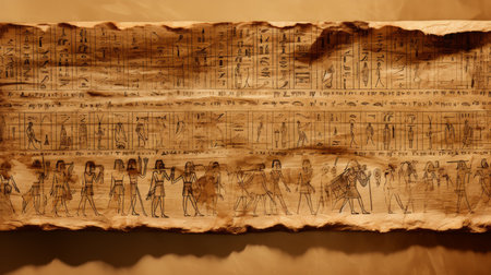 Ancient Egyptian Papyrus Scroll with Hieroglyphs, Decorative Antique Frame, Cultural Heritage Art