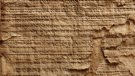 This image features an ancient scroll crafted from weathered papyrus, revealing intricate text that reflects deep historical interest and cultural significance.