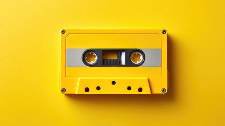 Bright yellow cassette tape set against an equally vibrant background captures retro vibes, perfect for creative projects related to music, nostalgia, and vintage aesthetics.