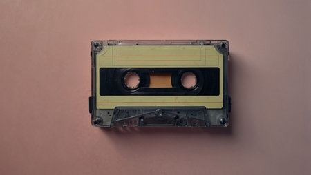 Old colorful cassette audio tape on pastel color background, and leave blank space above for text input