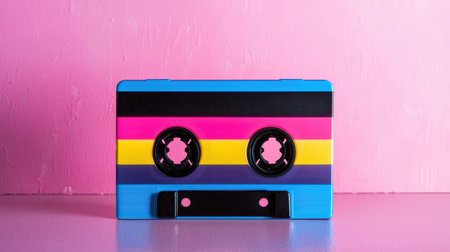 This neon-themed audio cassette design encapsulates the nostalgia of the s, showcasing retro aesthetics with vibrant colors. Perfect for celebrating music analog era and vintage pop culture