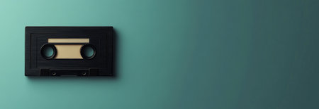 Single audio cassette background. Essence of analog music in a minimalist style. Minimal abstract retro technology idea. Party and fun concept. Copy space.