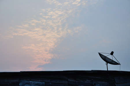 Silhouette of satellite dish antenna for television in the morning, Thailand