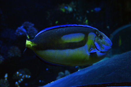 Beautiful Blue Lined Surgeonfish, Acanthurus lineatus, inside Aquarium