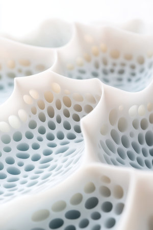 Abstract white porous structure with holes and intricate details.