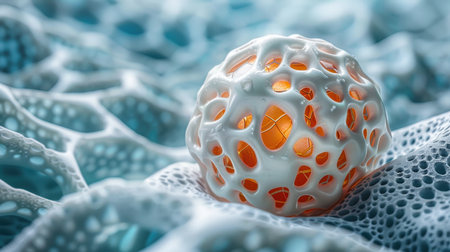 A Microscopic close-up view of a biological cellular structure, representing concepts of biology and medicine.