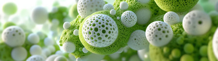 AI Generated. Microscopic Cellular Structure Abstract Greenish White Porous Texture