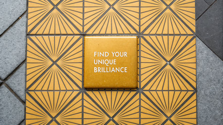 A textured golden tile featuring the inspiring words 'FIND YOUR UNIQUE BRILLIANCE' is centrally placed within a radiating geometric pattern, perfect for motivational decor and branding.