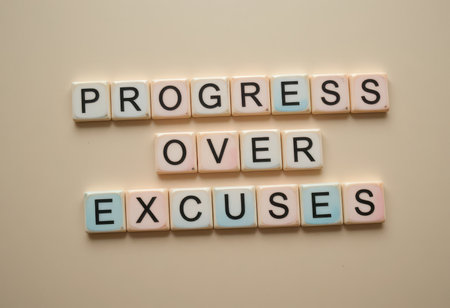 Inspirational quote showcasing the importance of choosing progress over making excuses. Ideal for personal growth and motivation themes, visually appealing for various uses.