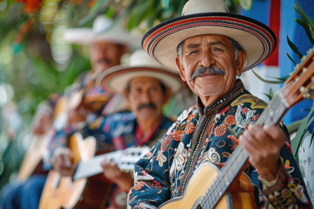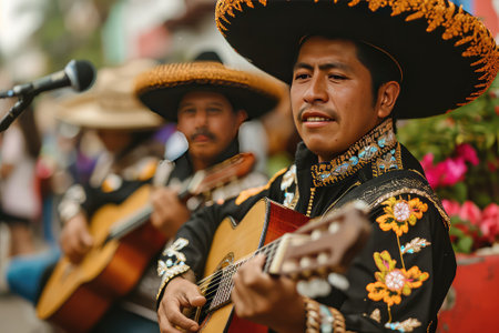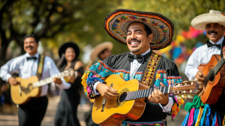 Mariachi Musicians band, cinco de mayo celebration. ai generated