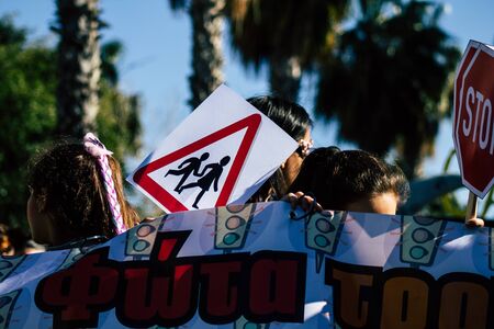 Paphos Cyprus March 01, 2020 View of unidentified people taking part in the Paphos carnival in the afternoon
