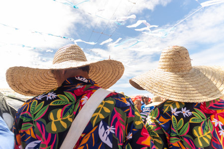 Salvador, Bahia, Brazil - February 02, 2023: People from a cultural group are seen performing during the festivities for Yemanja on Rio Vermelho beach in Salvador, Bahia.
