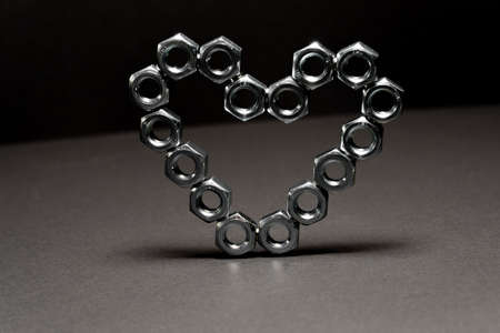 Heart shape made of hex bolts. Creative love concept