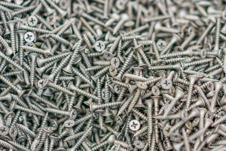 Tapping screws made of steel, metal screw, iron screw, screws as a background