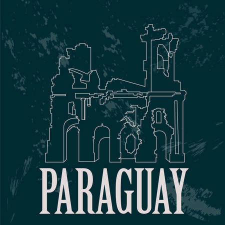 Paraguay landmarks. Ruinas de Humaita. Jesuit of Jesus ruins. Retro styled image. Vector illustration
