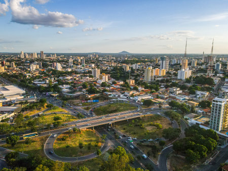 Aerial city scape of roundabout in summer in Cuiaba Mato Grosso Brazil