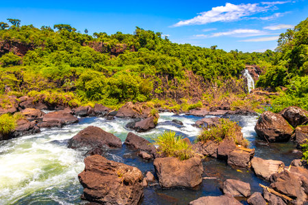 Forest, waterfalls and river with rocks, Foz do Iguaçu, Parana, Brazil