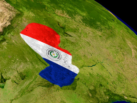 Map of Paraguay with embedded flag on planet surface. 3D illustration.