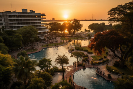 PUERTO IGUAZU, AGRENTINA, 28 NOVEMBER 2016: aerial view to craft market at the embankment at the border of 3 countries