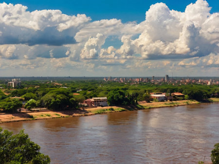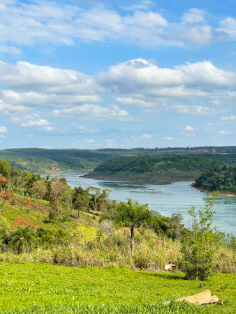 Beautiful landscape, view of the Parana River from Wanda Mine, Argentina.