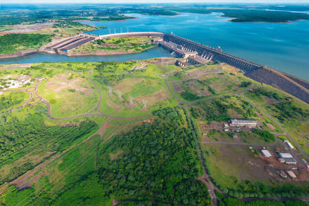 Aerial view of the Itaipu Hydroelectric Dam on the Parana River.