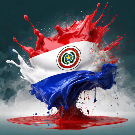 Paraguay flag paint liquid explosion on isolated background, generated by AI. High quality photo