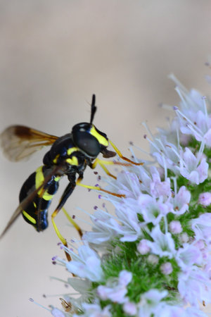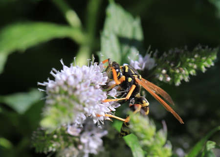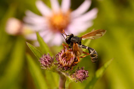 Wasp on flower eating nectar.