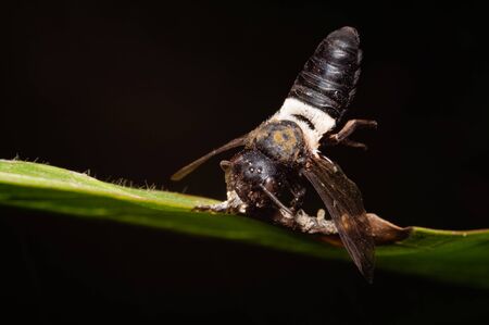 Sleeping Leaf-cutting Cuckoo Bee on a thin branch