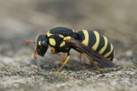 Closeup on a small tiny Mediterranean wasp, Celonites abbreviatus From Southern France sitting on wood