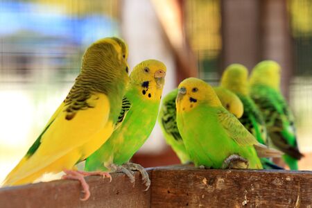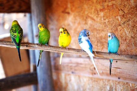 Budgerigar bird (latin name Melopsittacus undulatus). Multiple colored bird is famous pet.