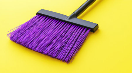 This image features a bright purple sweeper brush positioned on a vibrant yellow background, ideal for cleaning tasks or artistic home decor projects.