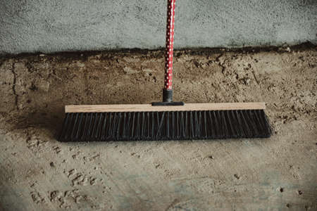 broom on cement concrete wall
