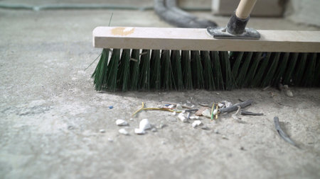 Cleaning debris with a broom on construction site floor