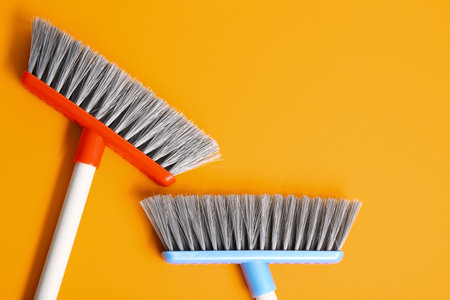 Brooms for cleaning on color background