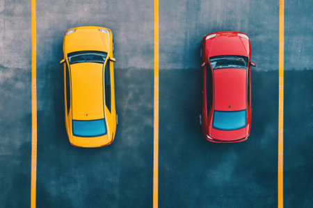 Top view of a parking lot with colorful cars
