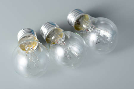 Three incandescent bulbs on grey background