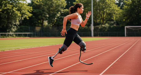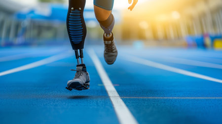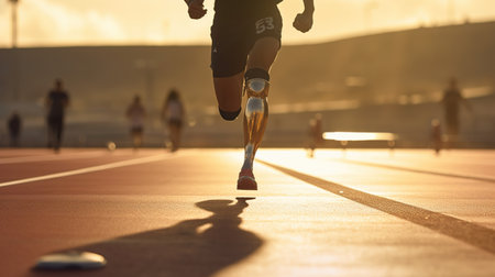 Generative AI, person with disability, prosthetic limb running and does not feel obstacles,