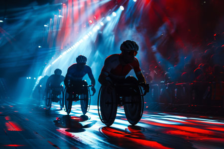 Wheelchair athlete in sports arena