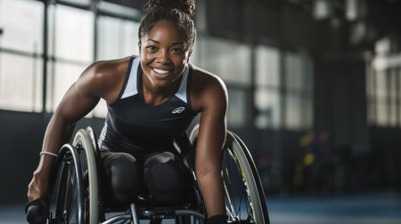 Confident Paralympic Athlete Woman in Wheelchair, Sports Portrait in Training Facility