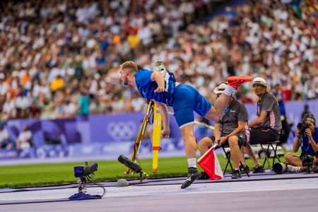 TONI KERANEN (FIN) of Finland, competes in the Men's Javelin Throw Qualification at the Stade de France Stadium during the 2024 Paris Summer Olympics in Paris, France.