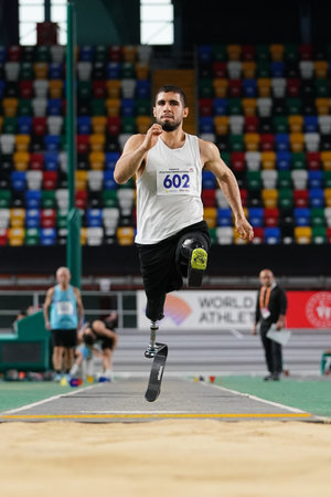 ISTANBUL, TURKIYE - JANUARY 18, 2025: Undefined athlete long jumping during Turkish Athletic Federation Indoor Athletics Record Attempt Races in Atakoy Athletics Arena