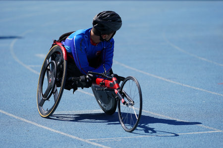 ISTANBUL, TURKIYE - JUNE 21, 2025: Undefined athlete wheelchair racing during Turkish Para Athletics Championship in Burhan Felek Athletics Field