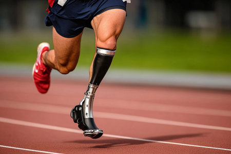 Generative AI, person with disability, prosthetic limb running and does not feel obstacles,