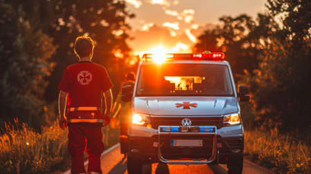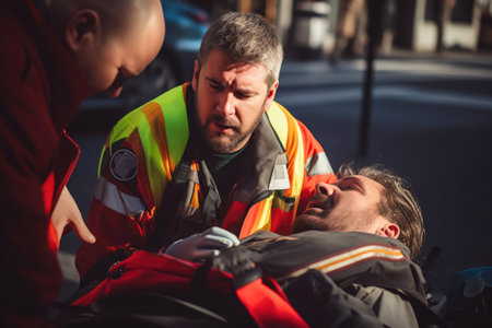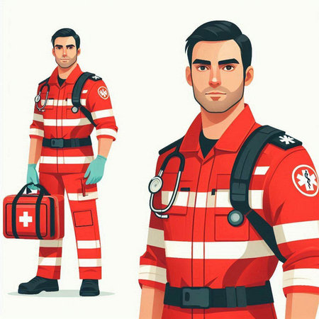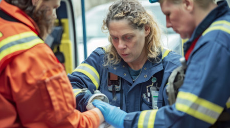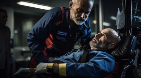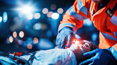 Depicting a medic or paramedic providing emergency medical care, illustrating healthcare, first aid, emergency response, medical assistance, and ambulance services.